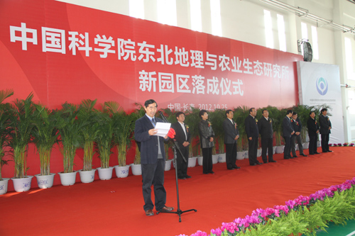 10月25日下午,陽光明媚、金風和暢,東北地理所彩旗飄揚、綠草如茵,質(zhì)樸典雅的樓群被裝扮一新,新園區(qū)落成儀式在體育館簡短而隆重的舉行。中國科學院院長、黨組書記、中科院院士白春禮,省委副書記、省長王儒林,省委常委、長春市委書記高廣濱,省委常委省委秘書長房俐,省政府秘書長李福春,中國科學院副秘書長吳建國,長春市市委常委、常務副市長肖萬民,長春市副市長、長春國家高新技術產(chǎn)業(yè)開發(fā)區(qū)管委會主任孫亞明,長春分院院長王利祥,我所所長何興元等領導出席了慶典儀式并為新園區(qū)落成剪彩。我所黨委書記胡乃澤主持了落成儀式,何興元所長致歡迎詞。