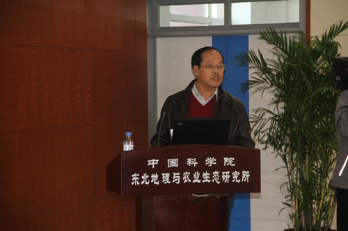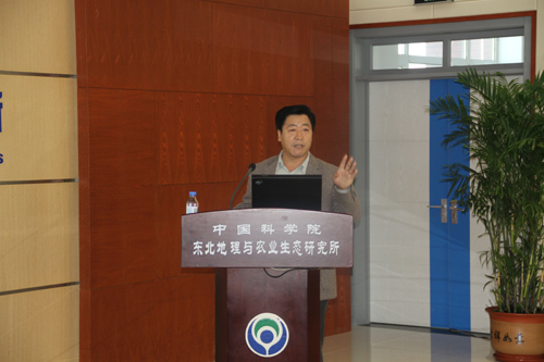 儀式結束后,各位領導來到我所綜合樓,在五樓多功能會議室聽取了兩個農(nóng)業(yè)專題的最新科研成果匯報,分別是梁正偉研究員所作的吉林西部鹽堿地治理開發(fā)研究進展與設想、和劉景雙研究員所作的東北作物高光效新型種植模式與關鍵技術,兩位研究員精彩的匯報贏得了在場領導的好評。離開會議室,領導一行參觀了我所遙感中心和分析測試部,王宗明研究員簡要的介紹了遙感中心的研究方向、重大任務和已取得的重要科研成果;在分析測試部,王國平研究員就我所分析測試能力以及最新引進的先進設備儀器向各位領導進行了介紹和展示。省委書記、白春禮院長等領導對我所基礎設施和科研實力的快速提升給予了充分肯定。
