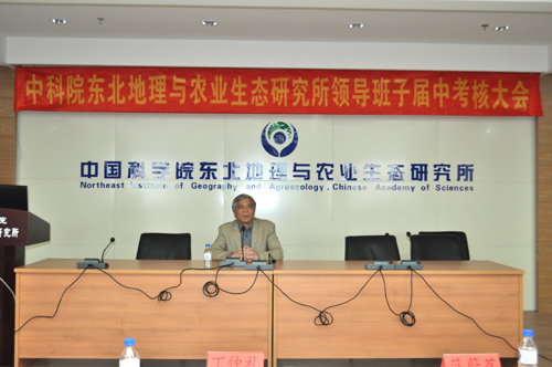 2012年11月6日,所領導班子屆中考核工作在長春園區(qū)舉行,由中科院副院長丁仲禮院士任考核組組長,資環(huán)局局長范蔚茗、院機關黨委常務副書記陳光、人教局領導干部處副處長張放、院辦公廳秘書處沈偉,以及長春分院黨組書記甘建國、副院長李冰、組織人事處處長于學鋒、組織人事處尚陽共同組成了考核組??己舜髸筛式▏鴷浿鞒?。