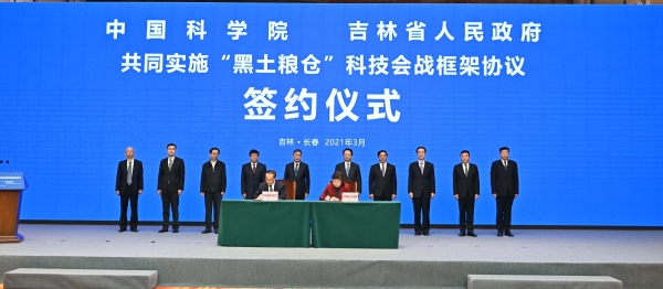 3月29日,中國科學(xué)院和吉林省人民政府在長(zhǎng)春共同啟動(dòng)“黑土糧倉”科技會(huì)戰(zhàn)。中科院院長(zhǎng)、黨組書記侯建國,吉林省委書記景俊海,吉林省委副書記、省長(zhǎng)韓俊等出席活動(dòng)。中科院副院長(zhǎng)張濤和吉林省副省長(zhǎng)李悅代表雙方簽署了科技會(huì)戰(zhàn)框架協(xié)議。