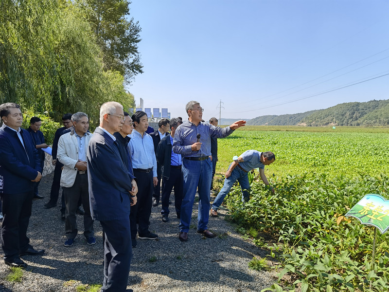9月8日,在遼河源基地,基地學(xué)術(shù)主任宋鳳斌研究員向杜宇新一行全面介紹了遼河源基地自建設(shè)以來就密切聯(lián)合遼源市委市政府、東遼縣委縣政府,充分發(fā)揮中國科學(xué)院系統(tǒng)多家單位的技術(shù)優(yōu)勢,根據(jù)流域不同區(qū)域、不同耕地類型,著眼實現(xiàn)經(jīng)濟價值、生態(tài)價值、社會價值有機統(tǒng)一,統(tǒng)籌山水林田湖草多個生態(tài)要素,開展矮桿密植糧豆輪作、玉米田間覆蓋作物減肥控藥、坡耕地退耕還林與林下資源綜合利用、面源污染多級防控與綜合治理等模式的示范應(yīng)用,全力推進黑土地保護尤其是高標(biāo)準(zhǔn)農(nóng)田建設(shè)工程。調(diào)研中,杜宇新詳細詢問了遼河源基地旱田高標(biāo)準(zhǔn)農(nóng)田建設(shè)的單位面積成本、成熟技術(shù)推廣應(yīng)用、產(chǎn)品銷售及市場反映情況,對基地大豆高產(chǎn)創(chuàng)建250-300 kg/畝的目標(biāo)非常認可,建議加大力度大面積示范推廣此項技術(shù),推動大豆生產(chǎn)能力的整體提升,為國家大豆生產(chǎn)做出巨大貢獻。
