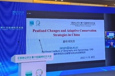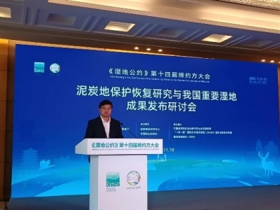 泥炭地碳儲量巨大,對于減緩氣候變化具有重要意義。中國始終把應(yīng)對氣候變化、開展泥炭地保護管理視作自身可持續(xù)發(fā)展的內(nèi)在要求和構(gòu)建人類命運共同體的責(zé)任擔(dān)當(dāng)。11月10日,在《濕地公約》第十四屆締約方大會期間,“泥炭地保護恢復(fù)研究與我國重要濕地成果發(fā)布”研討會成功召開。作為東道國系列重要活動之一,會議聚焦我國泥炭地保護的基礎(chǔ)理論及關(guān)鍵技術(shù)問題開展研討,旨在推動我國泥炭地學(xué)的理論體系構(gòu)建和泥炭地恢復(fù)技術(shù)的快速發(fā)展,服務(wù)國際履約,助力實現(xiàn)“雙碳”戰(zhàn)略。會議同步進行了濕地領(lǐng)域重要成果的發(fā)布與推介。國家林業(yè)和草原局濕地管理司作為指導(dǎo)單位,由國家濕地研究中心和中國林業(yè)出版社聯(lián)合主辦,中國科學(xué)院東北地理與農(nóng)業(yè)生態(tài)研究所、“一帶一路”國際科學(xué)組織聯(lián)盟(ANSO)國際濕地研究聯(lián)盟、地球觀測組織(GEO)承辦,會議采用線上線下相結(jié)合的方式,250余人參加了會議。