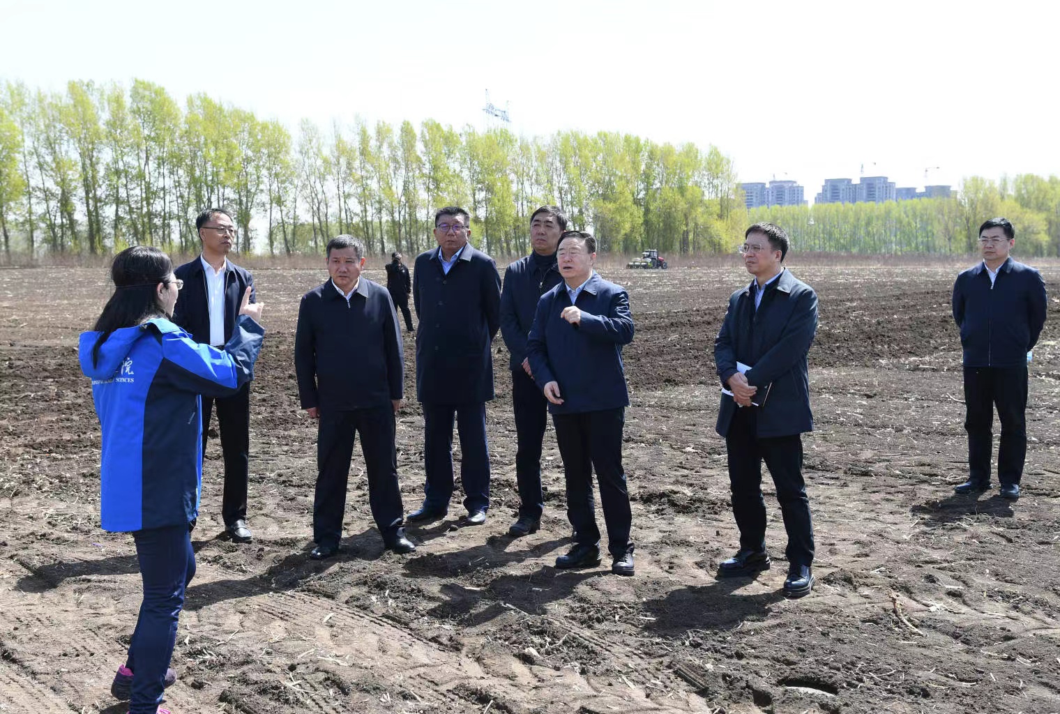 2023年5月1日上午,吉林省委常委、長春市委書記張恩惠來到農安縣“黑土糧倉”科技會戰長春示范區-陳家店萬畝核心示范基地,查看土壤墑情及春播進度。長春示范區負責人梁愛珍研究員介紹了示范區的建設情況,包括示范面積、建設思路、發展目標、技術部署和智慧農業區建設等情況。長春示范區本年將借助天空地一體化遙感技術,開展多要素、多時段立體監測,與農安縣農業建設工作結合起來,打造智慧農業樣板示范基地。