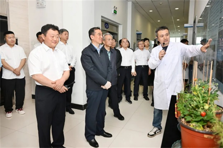在農業樓,調研組一行聽取了黑土地保護性耕作、鹽堿地綜合治理、耐鹽堿種質資源創制等工作情況。在種質資源樓,聽取了分子設計育種工作進展,現場查看了大豆基因突變體庫、高通量作物表型組分析系統及“東生”系列大豆新品種選育與轉化工作。在研究所展館,聽取了研究所歷史沿革、學科布局、承擔任務、科技平臺、人才隊伍、黨建工作及發展規劃等情況的介紹。