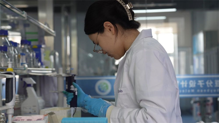 在育種場凍精生產(chǎn)實驗室里,工作人員正將每天新采集的1萬余劑種公牛凍精經(jīng)過質(zhì)量檢測、高倍稀釋、靜置、冷凍、灌裝等流程制成凍精制劑,這些凍精將發(fā)往全國各地。