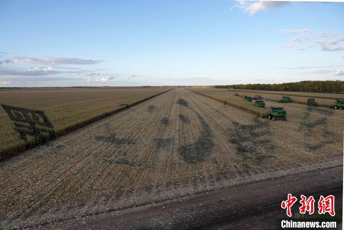 友誼農場“萬畝大地號”上,農機進行作物收割作業,場面壯觀。中新網記者 孫自法 攝