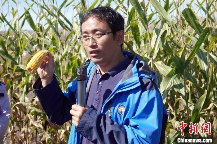 友誼農場一處玉米示范地里,劉煥軍研究員接受媒體采訪介紹“三江模式”。中新網記者 孫自法 攝