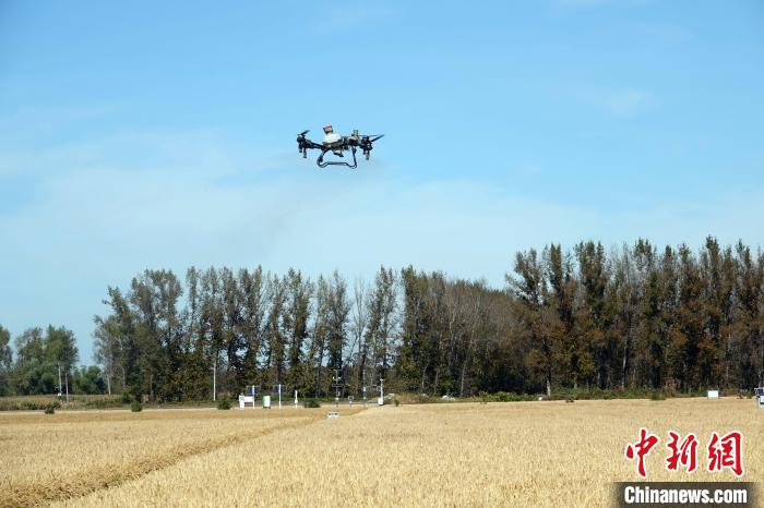 北大荒曙光農場,項目團隊用大型無人機在示范農田上空開展相關作業。中新網記者 孫自法 攝