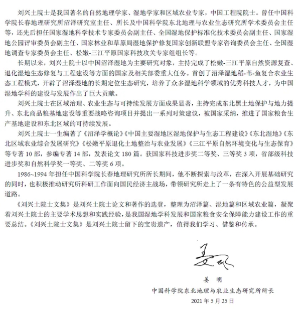 【賽拉艾芙】科學報國丨劉興土院士文集出版