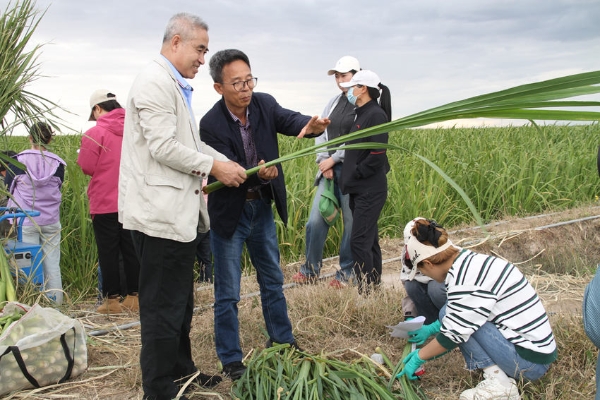 在鎮賚縣坦途鎮的蘇吉匯農業科技有限公司茭白田里,曾經白茫茫一片的重度鹽堿地,如今已化作千畝碧波,碧綠的茭白葉泛著油亮的光澤,隨風起伏,仿佛一片綠色的海洋。測產專家們就走進中國科學院東北地理與農業生態研究所在大田布置的控制實驗基地,交流研究進展和定位監測記錄的結果,大家對單項技術以及技術集成的應用效果表現出極大興趣和認可。專家組隨后來到生產田塊,“這片葉子顏色深綠,說明肥水管理到位。”“個別葉鞘下部出現少量褐斑,后期要注意針對性處理。”測產還未開始,專家們就已俯身田間,或蹲或立,仔細查看茭白的株高、葉色、根系發育情況。他們時而用手指輕捻葉片,感受葉片的質地;時而用尺測量株行距,精準記錄數據。他們還不時與身旁的農戶和企業技術人員交流意見,為這片茭白田的豐收“把脈問診”。陽光灑在他們專注的臉上,汗水順著鬢角滑落,卻絲毫沒有影響他們工作的熱情。