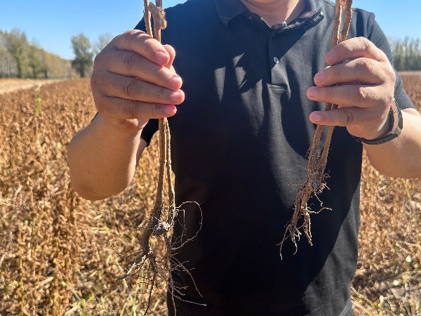 “這粒肥料的妙處在于既‘節(jié)本’又‘護(hù)土’,還能‘增產(chǎn)’,你看兩組田大豆的根系深度都不一樣,處理組大豆的根系更長。”東北農(nóng)業(yè)大學(xué)資源與環(huán)境學(xué)院教授姜佰文解釋說,硅鈣鎂硫等中量元素,恰好補(bǔ)上了長期施用“老三樣”造成的土壤養(yǎng)分缺口,像給作物根系“搭了腳手架”,刺激根系發(fā)育的同時,還能增強(qiáng)作物抗病抗逆能力;而微生物與礦質(zhì)元素的協(xié)同作用,不僅提高了肥料利用率,減少30%化肥用量,其保肥保墑的特性更讓板結(jié)的黑土地慢慢恢復(fù)“元?dú)狻薄?/p>