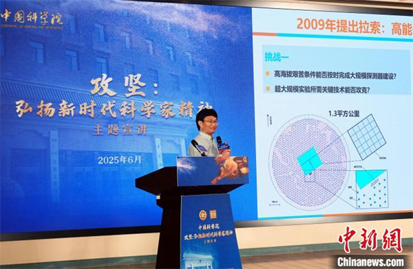 6月19日下午,中國(guó)科學(xué)院“攻堅(jiān):弘揚(yáng)新時(shí)代科學(xué)家精神”主題宣講在北京舉行,圖為陳松戰(zhàn)研究員宣講“海子山精神”。中新網(wǎng)記者 孫自法 攝