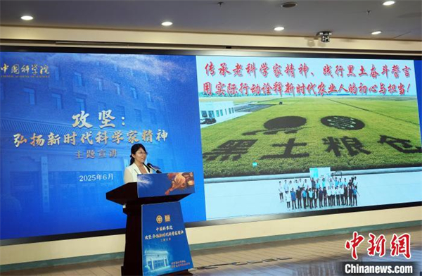 6月19日下午,中國(guó)科學(xué)院“攻堅(jiān):弘揚(yáng)新時(shí)代科學(xué)家精神”主題宣講在北京舉行,圖為梁愛(ài)珍研究員宣講“黑土精神”。中新網(wǎng)記者 孫自法 攝