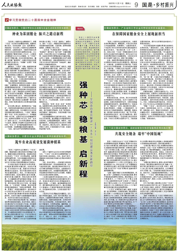 【人民政協報】強種芯 穩糧基 啟新程—全國政協委員解讀“十五五”規劃建議落實新路徑