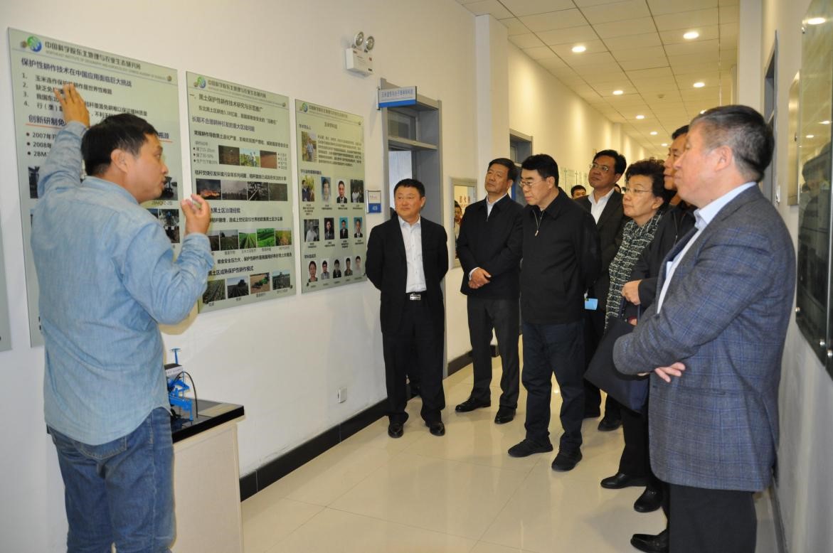 在玉米育種學(xué)科組,關(guān)義新研究員匯報了以“秸稈覆蓋少免耕為主要內(nèi)容的玉米保護(hù)性耕作“梨樹模式”,向調(diào)研組介紹了“梨樹模式”保證糧食增產(chǎn)的同時,提高了土壤的肥力和土地產(chǎn)量,增強(qiáng)了抗旱防澇抗倒伏的等抗逆減災(zāi)能力,減少了沙塵暴、水土流失以及秸稈焚燒的環(huán)境問題,對生態(tài)環(huán)境的改善非常重要。這項技術(shù)對于用好養(yǎng)好黑土地,夯實(shí)東北大糧倉具有重要作用。