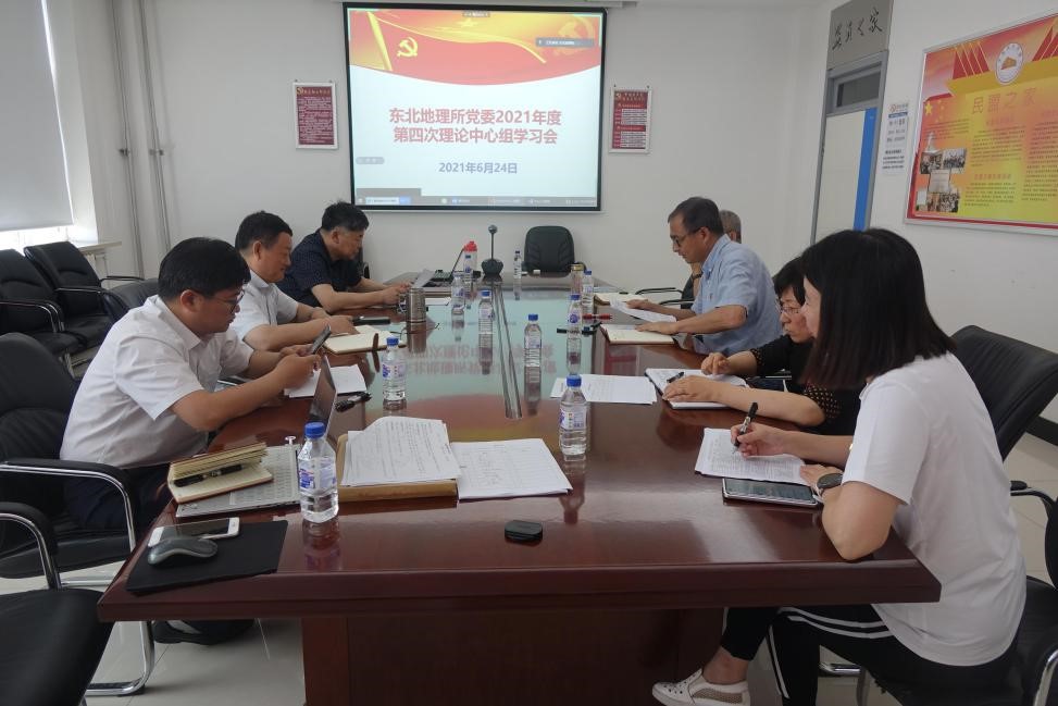 6月24日,東北地理所召開2021年度第四次黨委理論中心組學習會,哈爾濱所區視頻參加會議。會議專題學習改革開放和社會主義現代化建設新時期歷史以及黨的十八大以來的歷史,會議由黨委書記蘇陽主持。