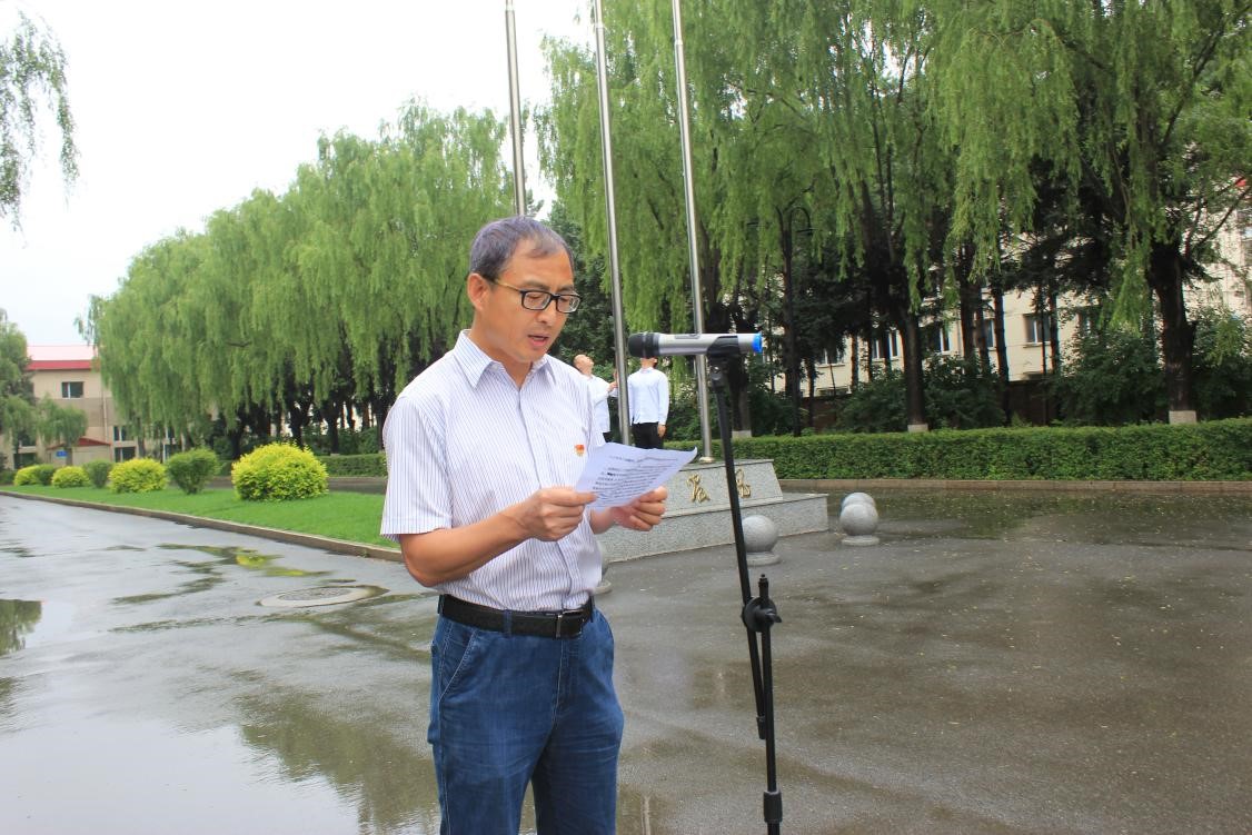 哈爾濱所區同步舉行升國旗儀式,副所長王宗明發表講話。