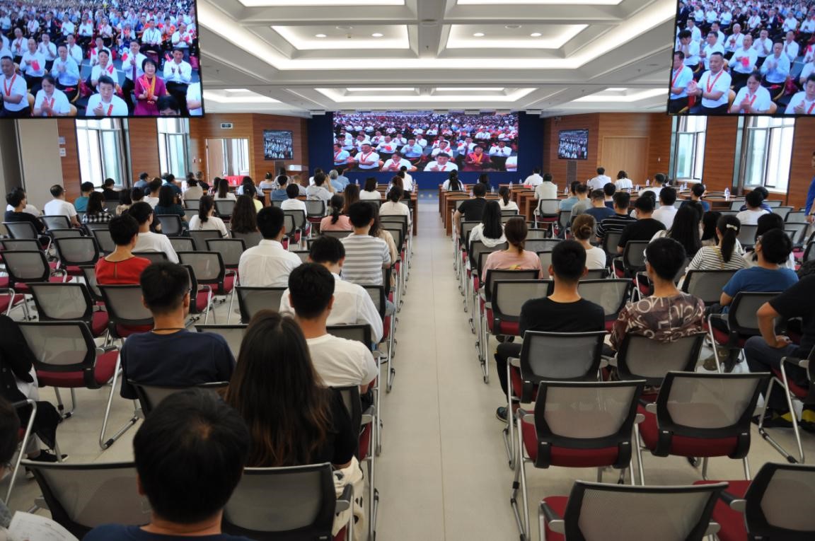 升國旗儀式結束后,全所職工、研究生集中觀看了慶祝中國共產黨成立100周年大會直播。