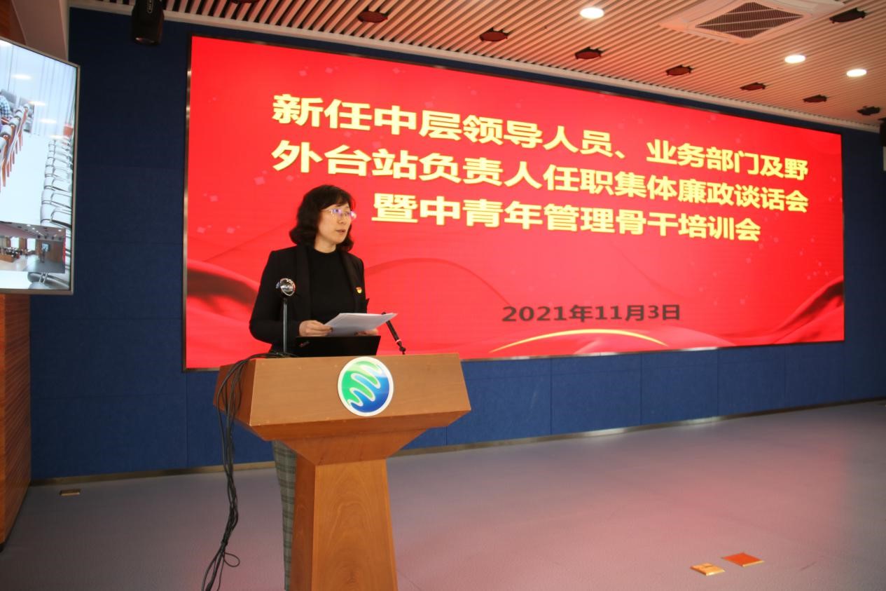 黨委書記蘇陽代表所黨委與中層干部作集體廉政談話,并對中層干部進行了上崗專題培訓。他以“守住底線 銳意進取 創先爭優——做忠誠 干凈 擔當 履職盡責的黨的好干部”為題作專題報告。他從年齡結構、學歷結構、專業背景、政治面貌等方面對新任職中層干部整體情況進行了全面梳理。他指出,這次調整按“精兵簡政、按需設崗、雙向選擇、競爭上崗”的原則,堅持把政治標準放在首位,選拔聘用又紅又專的干部,為更多專業背景好同時具有一定管理能力的優秀的年輕人提供了鍛煉機會。他進一步闡述了廉政談話的目的和意義,對中層干部提出廉潔從政的具體要求,并結合習近平總書記在2021年秋季學期中央黨校(國家行政學院)中青年干部培訓班開班式上發表的重要講話精神,對中層干部強化責任意識、履職擔當提出五點要求:一要加強政治理論學習,二要有崇高理想和堅定信念,三要堅持一切從實際出發,四要敢擔當、善作為,堅持斗爭精神,五要講規矩、守底線。