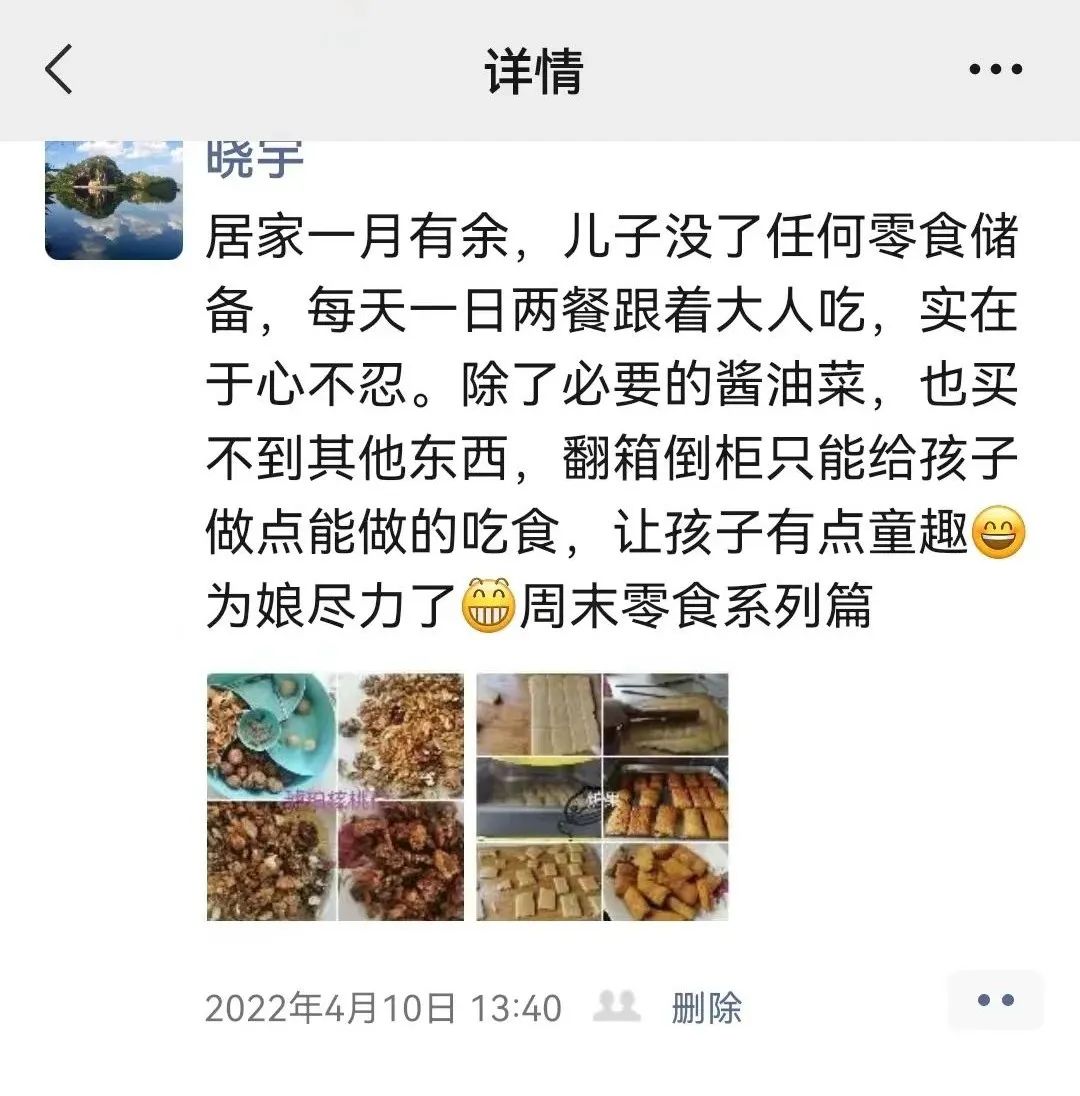 李曉宇:居家一月有余,家里的儲備零食已用盡,能保證基本生活必備品,但買不到其他物資,只能自己動(dòng)手為孩子制作琥珀核桃和爐果。