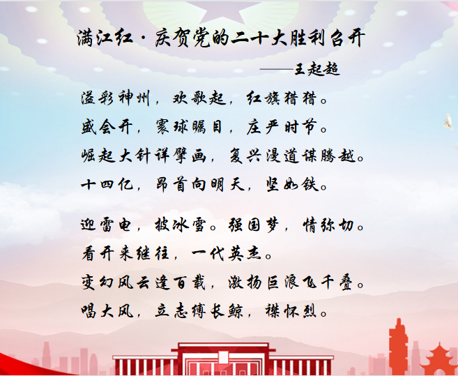 王起超即興賦詩(shī)《滿江紅·慶賀黨的二十大勝利召開(kāi)》。