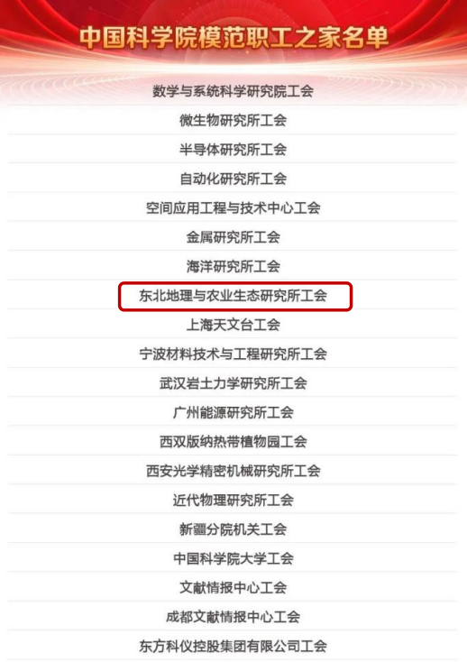 喜報∣東北地理與農業生態研究所工會榮獲中國科學院模范職工之家稱號