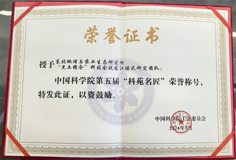2024年5月17日,中國科學(xué)院第五屆“科苑名匠”發(fā)布活動(dòng)在京舉行,我所“黑土糧倉”科技會(huì)戰(zhàn)龍江模式研究團(tuán)隊(duì)喜獲中國科學(xué)院第五屆“科苑名匠”稱號(hào)。