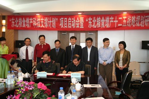 5月11日,在中科院“東北糧食增產(chǎn)科技支撐計劃”項目啟動會上,我所何興元所長與沈陽軍區(qū)直屬農(nóng)副業(yè)基地管理局高同彬局長簽署了《中國科學(xué)院東北地理與農(nóng)業(yè)生態(tài)研究所與沈陽軍區(qū)龍鎮(zhèn)農(nóng)副業(yè)基地科技合作協(xié)議》,院生物局張知彬局長、長春分院王利祥院長以及地方有關(guān)領(lǐng)導(dǎo)參加了簽約儀式。