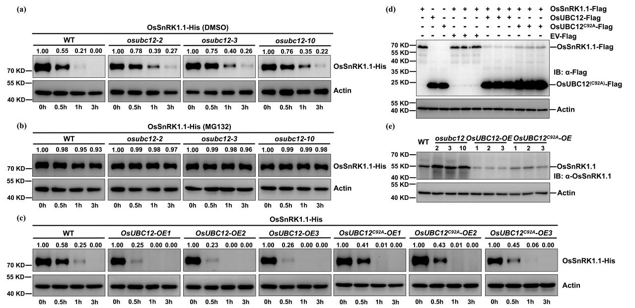 圖3 OsUBC12促進(jìn)OsSnRK1.1的降解