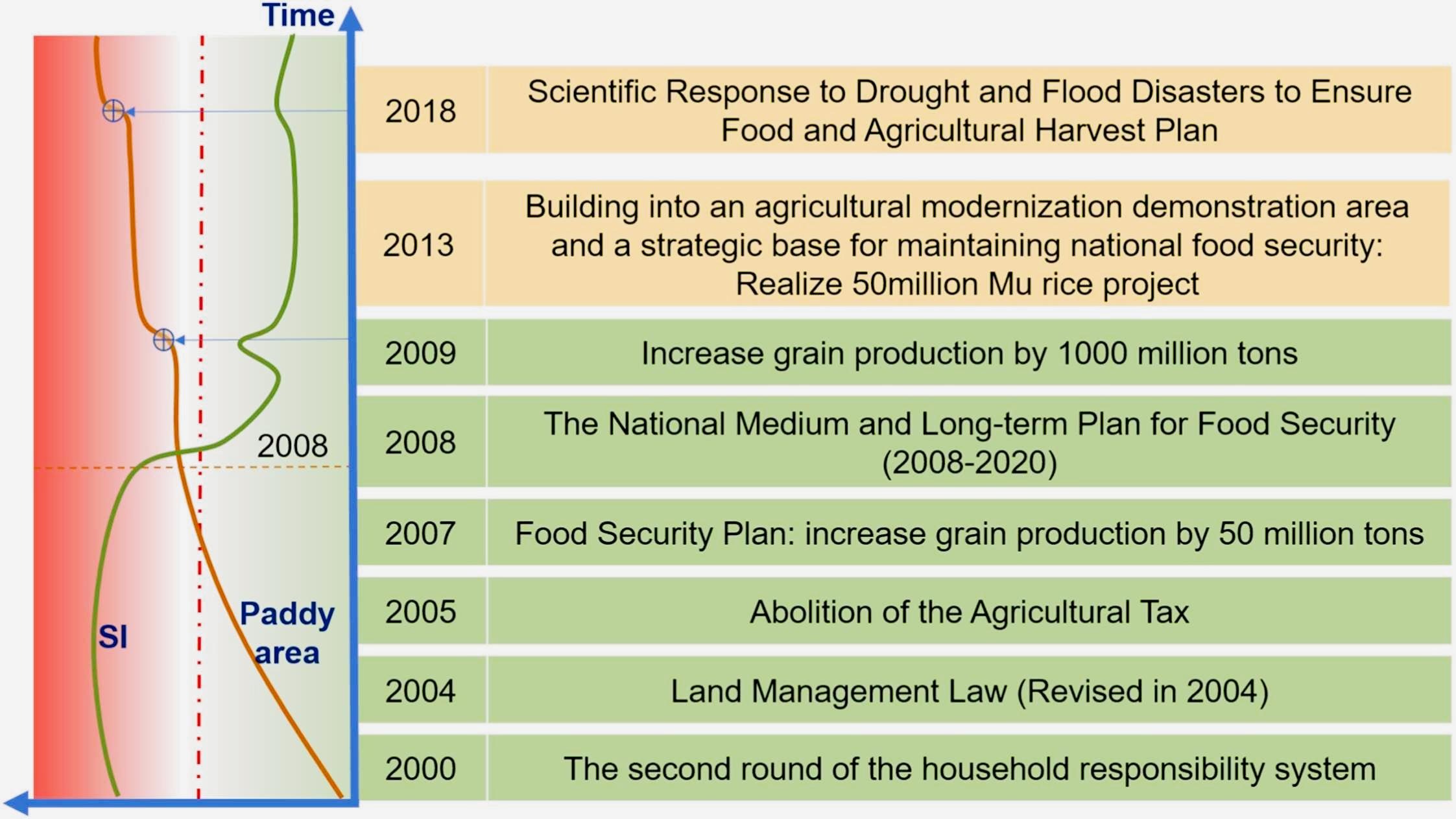 圖3. 政策驅(qū)動(dòng)下三江平原水田面積和地下水可持續(xù)性變化