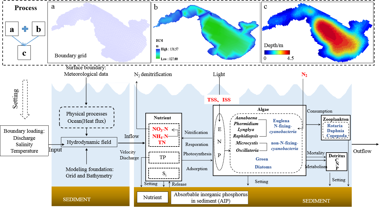 圖2?湖泊水動力-水質-水華綜合模型概念圖