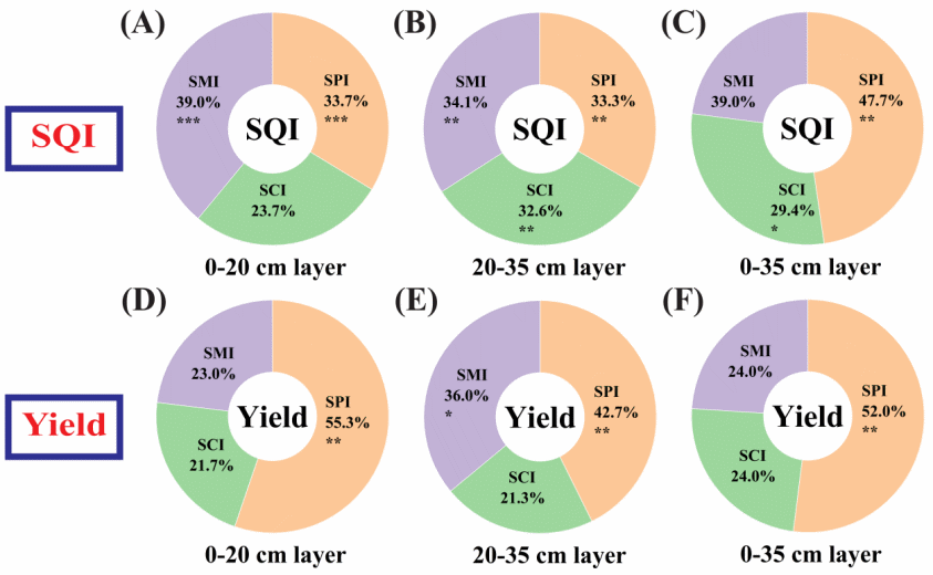 圖3. SPI、SCI和SMI對SQI和玉米產(chǎn)量的貢獻