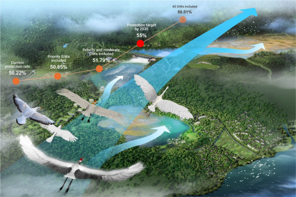 研究進(jìn)一步表明,將小/孤濕地納入保護(hù)體系后,遷徙鳥類停歇地間距可由平均20.9公里縮短至3.2公里,顯著增強(qiáng)生態(tài)連通性。這不僅有助于提升生物多樣性保護(hù)和生態(tài)系統(tǒng)韌性,也與《昆明—蒙特利爾全球生物多樣性框架》提出的“30×30”目標(biāo)高度契合,即到2030年有效保護(hù)30%的陸地和內(nèi)陸水域。作為首個(gè)針對中國小/孤濕地的系統(tǒng)盤點(diǎn),該研究提出了一套可推廣的數(shù)據(jù)驅(qū)動(dòng)框架,為全球快速濕地評估提供了新思路。通過認(rèn)清這些“小而關(guān)鍵”濕地的保護(hù)價(jià)值,并通過制定優(yōu)先、中等和一般的分類保護(hù)建議,填補(bǔ)全國尺度濕地保護(hù)空缺,提升中國濕地生態(tài)系統(tǒng)系統(tǒng)和全面保護(hù)繼續(xù)走在世界前列。