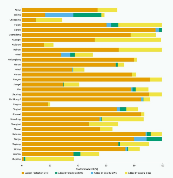 圖4 小/孤濕地納入保護(hù)后的各省保護(hù)率提升情況