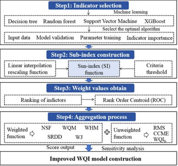 針對以上不足和問題,中國科學院東北地理與農業生態研究所科研人員基于121個采樣點構建了MCS-RP-TOPSIS-GSA綜合評估模型,減少了采樣頻率不足與操作誤差導致的不確定性,重新分配指標權重,最終通過隸屬函數(最優系數P=1.15)實現富營養化等級劃分,構建了區域水體富營養化評價指標Qi,模型精度顯著高于傳統TLI模型(圖1)。評價了多水體類型的富營養化對比框架,系統分析多好尺度驅動因素的耦合作用。結果表明中西部區域水質低于東部地區,深水湖庫的富營養化狀態優于淺水湖泊優于河流,TN、TP和CODMn是影響東北黑土區地表水富營養化的主要敏感因子。此外,基于480個全季節穆棱-興凱湖流域逐月水質數據,采用機器學習篩選關鍵指標,采用8種聚合函數優化出最優函數,結合ROC方法分配指標權重,降低評估的不確定性,構建改建的WQI模型來評估湖泊-流域的水質狀態(圖2)。結合結構方程模型(SEM),首次明確不同季節水質惡化的主導驅動因素即夏-秋季以人類活動(灌溉面積、施肥量)為主,冬季-春季以自然因素(氣溫、降水、流量)為主,量化了自然與人類活動對水質的耦合影響。