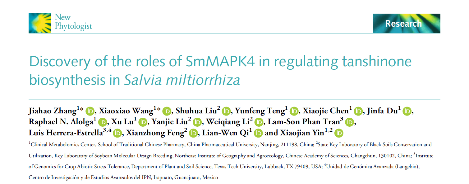 1, Zhang J, Wang X, Liu S, Teng Y, Chen X, Du J, Alolga RN, Lu X, Liu Y, Li W, Tran LP, Herrera-Estrella L, Feng X, Qi LW, Yin X. Discovery of the roles of SmMAPK4 in regulating tanshinone biosynthesis in Salvia miltiorrhiza. New Phytol. 2025 Dec 19. doi: 10.1111/nph.70825.