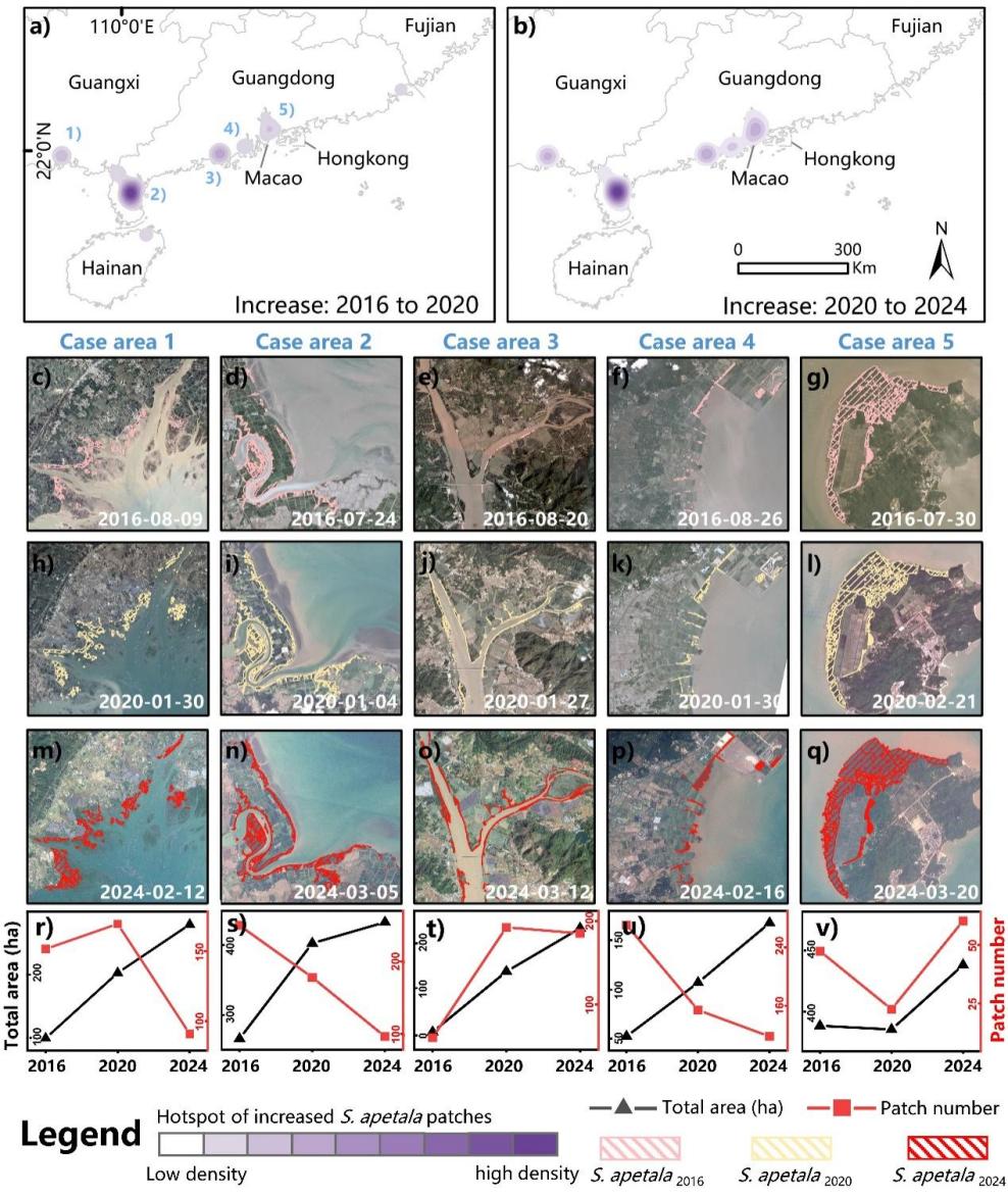圖2016-2024年中國無瓣海桑擴張熱點區域