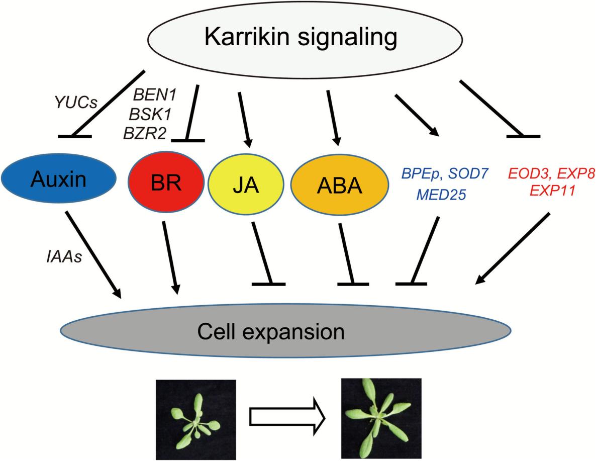 圖4. 擬南芥KAR信號通路調控蓮座葉大小的機制模型