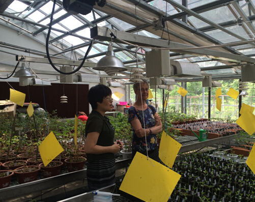 2015年6月17日美國加州大學(xué)戴維斯分校Valerie Williamson教授應(yīng)農(nóng)田有害生物控制學(xué)科組王從麗研究員邀請,受國家外國專家局資助來所進(jìn)行合作研究和學(xué)術(shù)交流。6月18日下午在哈區(qū)進(jìn)行學(xué)術(shù)報告“The chemical ecology of root-knot nematode targeting to plant entry sites”,長春視頻,報告主要從根結(jié)線蟲基因組學(xué)、遺傳機制、北方根結(jié)線蟲的遺傳學(xué)、線蟲的寄主范圍和抗性、根結(jié)線蟲怎樣獲得侵染新寄主的能力、化學(xué)信號(線蟲對寄主的反映及相互作用)等內(nèi)容進(jìn)行交流。所里的很多科研人員和研究生們都積極參加并踴躍發(fā)言,達(dá)到了學(xué)術(shù)交流的目的。王從麗研究員向美國專家介紹了實驗室的研究方向及進(jìn)展,專家對該學(xué)科的幾方面研究進(jìn)行了充分討論,并給予充分的肯定,為了學(xué)科組今后更順利和更好的發(fā)展,專家提出了寶貴的建議,并對研究生的研究方案和方法進(jìn)行了詳細(xì)的指導(dǎo)。Williamson教授又到中國科學(xué)院海倫生態(tài)實驗站進(jìn)行了參觀訪問,韓曉增站長詳細(xì)地為她介紹了海倫試驗站長期定位實驗,使Willamson教授對東北黑土及其相關(guān)的研究有了更深的了解。Williamson教授和王從麗研究員在線蟲識別植物信號的鑒定與應(yīng)用方面有了更深一步的討論,她的訪問對促進(jìn)中國科學(xué)院東北地理與農(nóng)業(yè)生態(tài)研究所與美國加州大學(xué)的持續(xù)合作奠定了基礎(chǔ)。