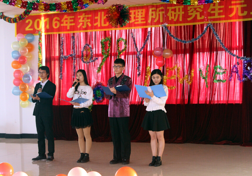 2015年12月30日下午,由研究生部主辦、研究生會(huì)承辦,以“青春韶華,炫彩東地”為主題的2016年研究生元旦聯(lián)歡會(huì)于餐廳二樓舉行。所黨委書記蘇陽(yáng)、副所長(zhǎng)李秀軍、紀(jì)委副書記邵慶春、人教處副處長(zhǎng)郭琳、研究生部主任王玉榮、研究生部侯雪瑩、吳秋菊及全體研究生和部分青年職工參加了此次聯(lián)歡會(huì)。