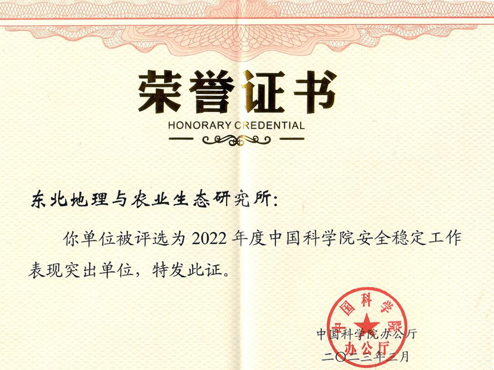 東北地理所榮獲“中國科學(xué)院2022年度安全穩(wěn)定工作突出單位”稱號