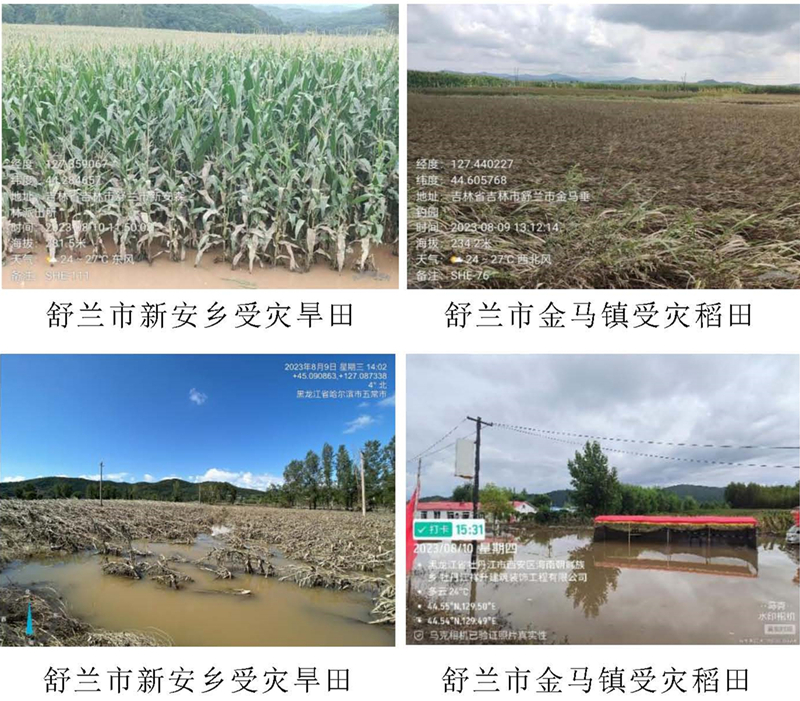 2023年8月份,受五號臺風(fēng)“杜蘇芮”和第6號臺風(fēng)“卡努”的影響,吉林省和黑龍江省迎來了持續(xù)強(qiáng)降雨,多地出現(xiàn)了洪澇災(zāi)害。其中受五號臺風(fēng)“杜蘇芮”的影響最為嚴(yán)重。黑龍江五常市迎來持續(xù)強(qiáng)降雨,拉林河流域發(fā)生50年一遇特大洪災(zāi),五常市民樂朝鮮族鄉(xiāng)、志廣鄉(xiāng)、衛(wèi)國鄉(xiāng)、龍鳳山鎮(zhèn)等18個鄉(xiāng)鎮(zhèn)不同程度受災(zāi);吉林省舒蘭市拉林河流域發(fā)生50年一遇特大洪災(zāi),舒蘭市金馬鎮(zhèn)、開原鎮(zhèn),七里鄉(xiāng)等7個村鎮(zhèn)受災(zāi)嚴(yán)重;白城市大安市兩家子鎮(zhèn)附近受洪水侵蝕較為嚴(yán)重,多處道路房屋受損,玉米大面積倒伏受災(zāi),且仍有大面積積水存在,同興村,同勝村,三家子,四家子等兩家子鎮(zhèn)下屬村都受災(zāi)明顯。