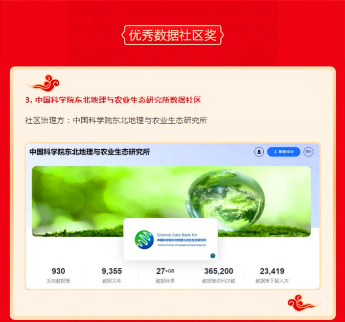 東北地理所數(shù)據(jù)社區(qū)榮獲第三屆“ScienceDB科學(xué)數(shù)據(jù)獎”優(yōu)秀數(shù)據(jù)社區(qū)