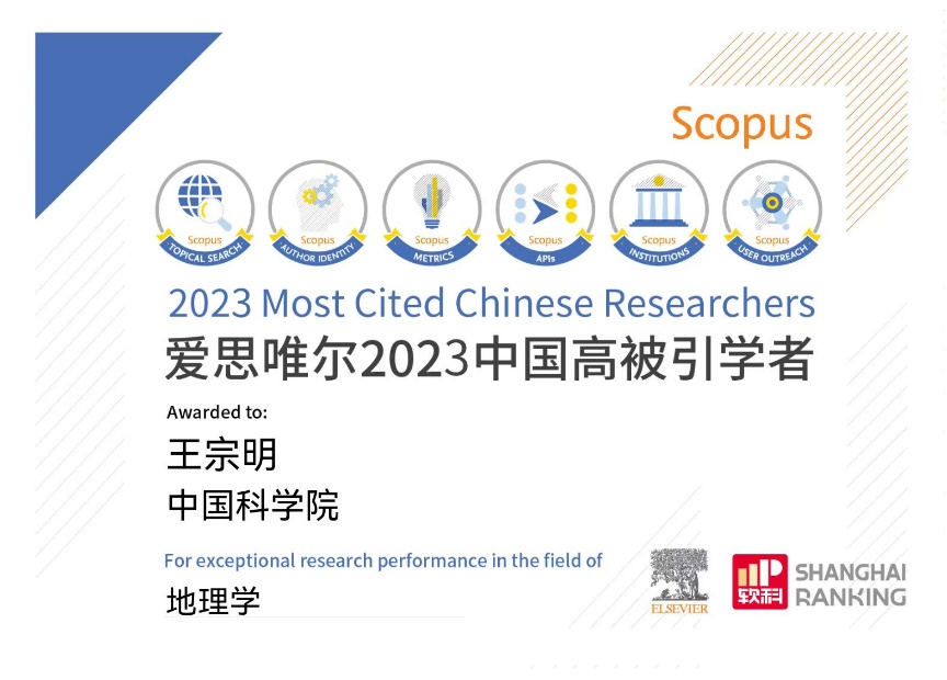 王宗明研究員連續兩年入選Elsevier“中國高被引學者”榜單