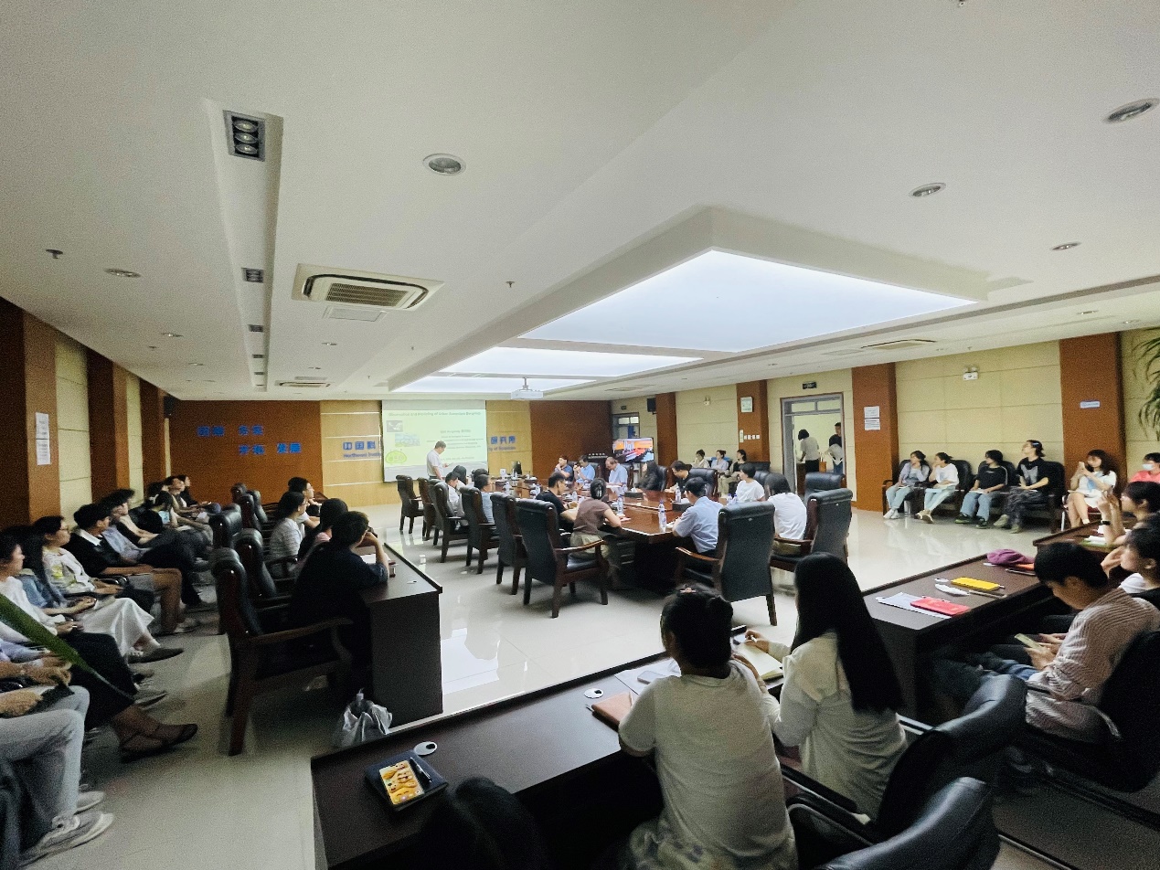????蕭向明教授從介紹俄克拉荷馬的地理位置和特色開篇,以“快速城市化過程帶來一系列生態(tài)環(huán)境問題,其中包括對植被造成了顯著的影響”為背景,分別從城市土地覆蓋類型的遙感分類、城市植被總初級生產力(GPP)的模型模擬、不透水面擴張和生態(tài)管理與氣候變化對城市植被綠度和GPP時空變化的影響共三個方面進行了詳細的講解。最后總結了集成光學、微波和激光雷達數(shù)據開展城市不透水層的遙感分類方法;植被生產力模擬模型(VPM)對于估算城市地區(qū)的總初級生產力的適用性;城市植被綠度和GPP受不透水面擴張的負向影響,而受植被管理和氣候的正向影響;社會經濟條件和政策是城市植被綠度和GPP動態(tài)的重要驅動因素等。蕭向明教授的報告內容豐富、講解深入淺出,極具指導意義,引發(fā)與會師生的熱烈討論。