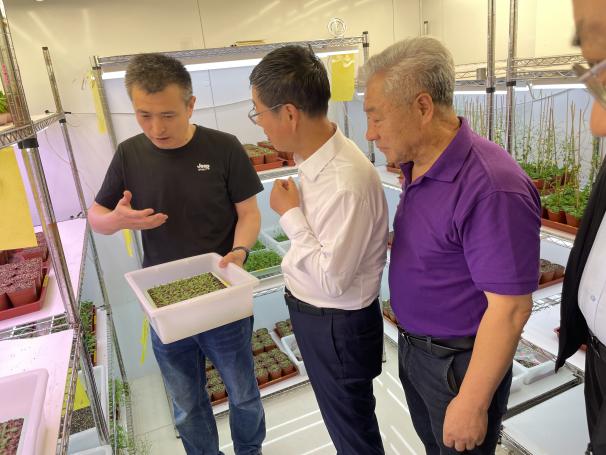 在農業樓,馬駟驄博士介紹了黑土地保護性耕作技術及機械。大安站站長梁正偉研究員詳細介紹了鹽堿地“良田+良種+良法”三良一體化高效治理與綜合利用“大安模式”技術內涵、自黑土糧倉科技會戰以來“大安模式”的技術推廣應用情況。楊帆研究員介紹了蘇打鹽堿土壤專用改良劑產品落地情況。李偉強研究員介紹了植物耐鹽堿機制與耐鹽堿水稻育種技術。在種質資源樓,程志遠介紹了分子設計育種工作進展及“東生”系列大豆新品種選育與轉化工作。在研究所展館,王敏玲介紹了研究所歷史沿革、學科布局、承擔任務、科技平臺與人才隊伍等情況。齊北松博士介紹了“黑土糧倉”科技會戰指揮中心與智慧農業管控平臺。