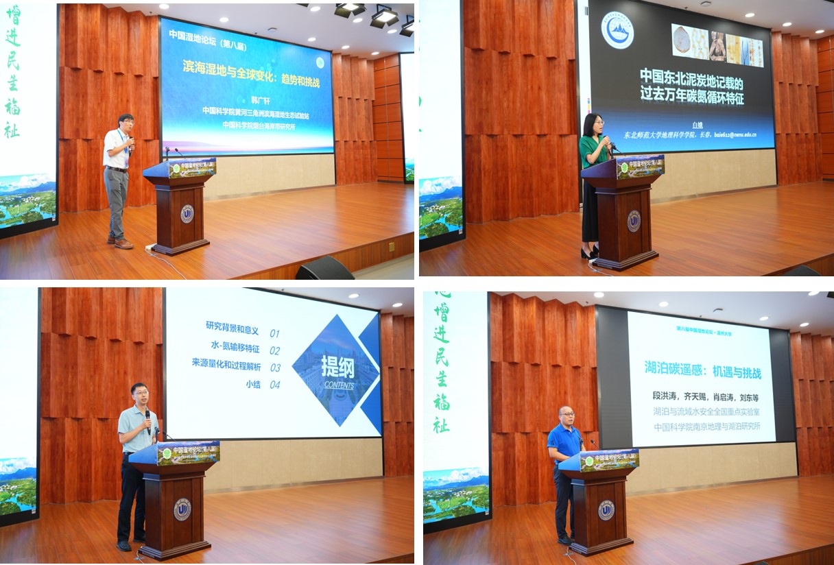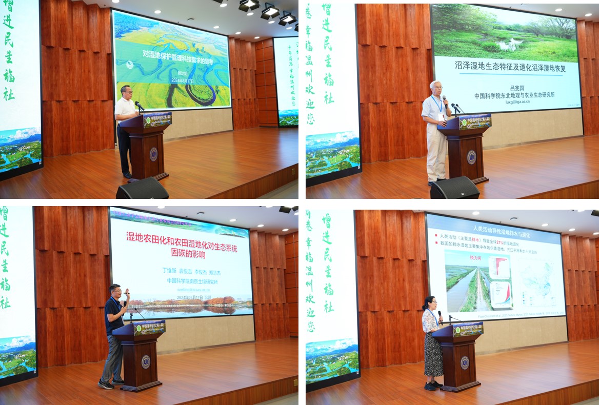 2024年8月16日至18日,“中國(guó)濕地論壇(第八屆)暨中國(guó)生態(tài)學(xué)學(xué)會(huì)濕地生態(tài)專業(yè)委員會(huì)2024年年會(huì)”在浙江溫州大學(xué)成功召開(kāi)。本次大會(huì)由中國(guó)生態(tài)學(xué)學(xué)會(huì)濕地生態(tài)專業(yè)委員會(huì)、國(guó)家濕地研究中心、溫州大學(xué)主辦,溫州大學(xué)生命與環(huán)境科學(xué)學(xué)院、中國(guó)科學(xué)院東北地理與農(nóng)業(yè)生態(tài)研究所(后稱“東北地理所”)、國(guó)際濕地研究聯(lián)盟、國(guó)際濕地科學(xué)家協(xié)會(huì)中國(guó)分會(huì)等協(xié)辦。中國(guó)生態(tài)學(xué)學(xué)會(huì)濕地生態(tài)專業(yè)委員會(huì)主任、東北地理所所長(zhǎng)姜明研究員,國(guó)家林業(yè)和草原局原一級(jí)巡視員、教授級(jí)高級(jí)工程師鮑達(dá)明,中國(guó)生態(tài)學(xué)學(xué)會(huì)副秘書(shū)長(zhǎng)岳躍民研究員,溫州大學(xué)校長(zhǎng)趙敏教授,東北地理所呂憲國(guó)研究員,中國(guó)科學(xué)院長(zhǎng)春分院副院長(zhǎng)、中國(guó)生態(tài)學(xué)會(huì)濕地生態(tài)專業(yè)委員會(huì)副主任、秘書(shū)長(zhǎng)武海濤研究員,中國(guó)科學(xué)院植物研究所副所長(zhǎng)馮曉娟研究員,中國(guó)科學(xué)院煙臺(tái)海岸帶研究所副所長(zhǎng)韓廣軒研究員,東北師范大學(xué)地理科學(xué)學(xué)院院長(zhǎng)白娥教授,中國(guó)科學(xué)院南京土壤研究所丁維新研究員,華東師范大學(xué)李秀珍研究員,天津大學(xué)李思亮教授,中國(guó)科學(xué)院南京地理與湖泊研究所段洪濤研究員等濕地領(lǐng)域?qū)<摇W(xué)者及研究生參加了本次盛會(huì)。本次大會(huì)共有來(lái)自60余家科研單位和高校的400余人參加會(huì)議。