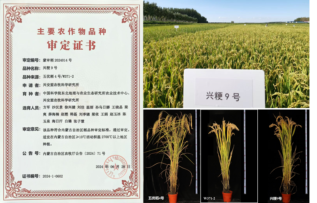 近日,由中國科學院東北地理與農業生態研究所農業技術中心和興安盟農牧科學研究所共同選育的高產優質水稻新品種“興粳9號”(審定編號:蒙審稻2024014號)順利通過內蒙古自治區農作物品種審定。