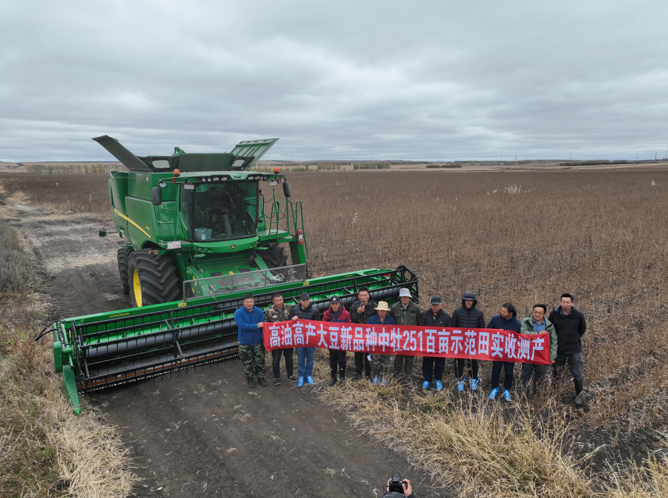 2024年9月30日,在黑龍江省五大連池市,專家組對中國科學院“種子精準設計與創(chuàng)作”A類先導專項——“大豆抗旱新品種的精準設計”任務中培育的大豆新品種“中牡251”百畝示范田進行測產。專家組由黑龍江省農業(yè)科學院綏化分院景玉良研究員任組長,成員有黑龍江省農業(yè)科學院大豆研究所王廣金研究員、黑龍江省農業(yè)科學院柴永山研究員、黑龍江省農業(yè)科學院克山分院張勇副研究員。