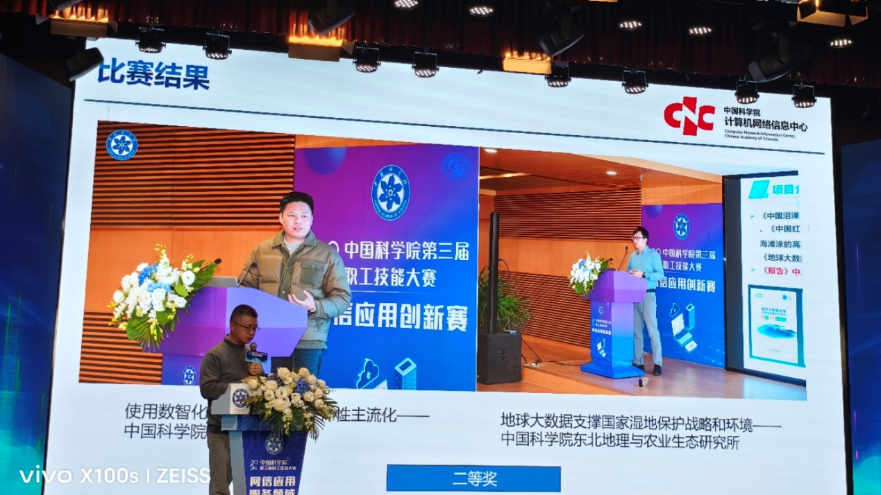 2024年11月27日,中國科學院第三屆職工技能大賽網信應用服務領域賽在計算機網絡信息中心落下帷幕。東北地理所申報的《地球大數據支撐國家濕地保護戰略和環境外交》項目,經過初賽和決賽的激烈比拼,榮獲網信應用服務領域網信應用創新賽二等獎。